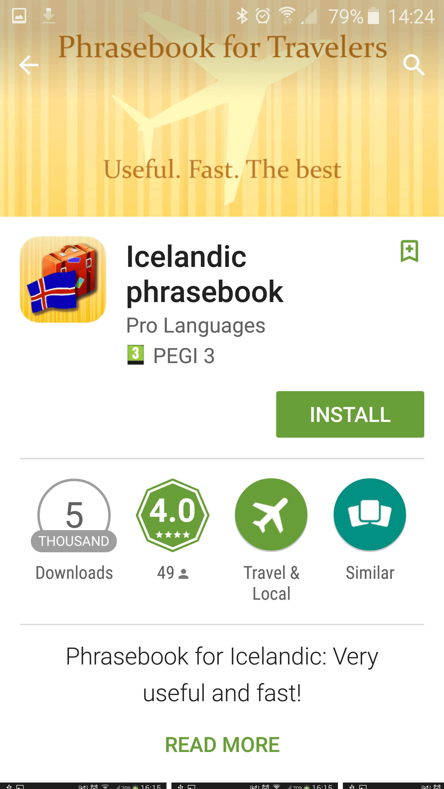 Although most Icelanders speak English and/or other languages, it’s always very educational and fun to learn the local language. Unless you are a genius, you won’t learn a language while on vacation but you might learn a few phrases to get you going. This app covers many phrases in the transport, eating, shopping and so on.