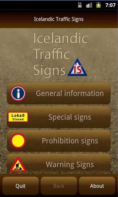 Once installed, this app also works offline so you can check out what those highland signs means. Icelandic Traffic Signs is approved by The Road Traffic Directorate in Iceland.