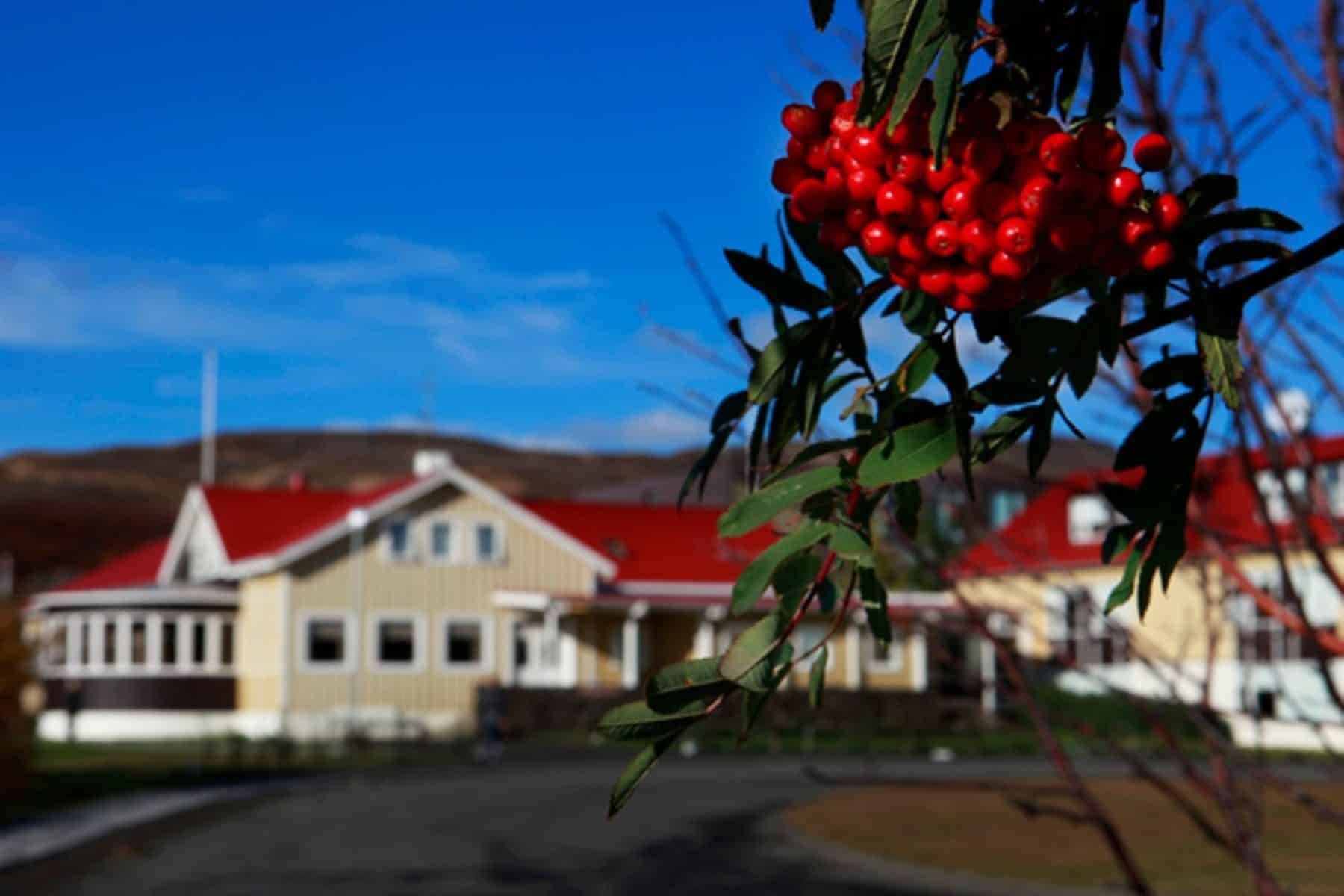 After you have arrived in north Iceland, your first village will be Laugarbakki, one of the smallest villages you’ll see with a population of 57 people (2018 numbers). It lies above the beautiful salmon river Miðfjarðará. The village has a pool that has been converted to hot tubs. Here is also a huge ball room with room for 400 people. It is mostly used by the locals for different celebrations. There is a community center and the old boarding school has been converted to a hotel.