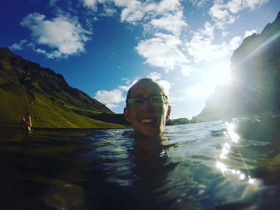 Once back to the van it was a short trip to the black beach where I believe some of the Dragonstone scenes were filmed (Game Of Thrones reference number 3). With the black sand beneath our feet, the mountains surrounding us and the waves crashing we felt the tiredness from the previous hikes wash away. We were re-energized and back on the road and heading towards our final campsite, Tjaldsvaedi. Once there we grabbed some food, got our swim shorts on and headed to the Blue Lagoon.