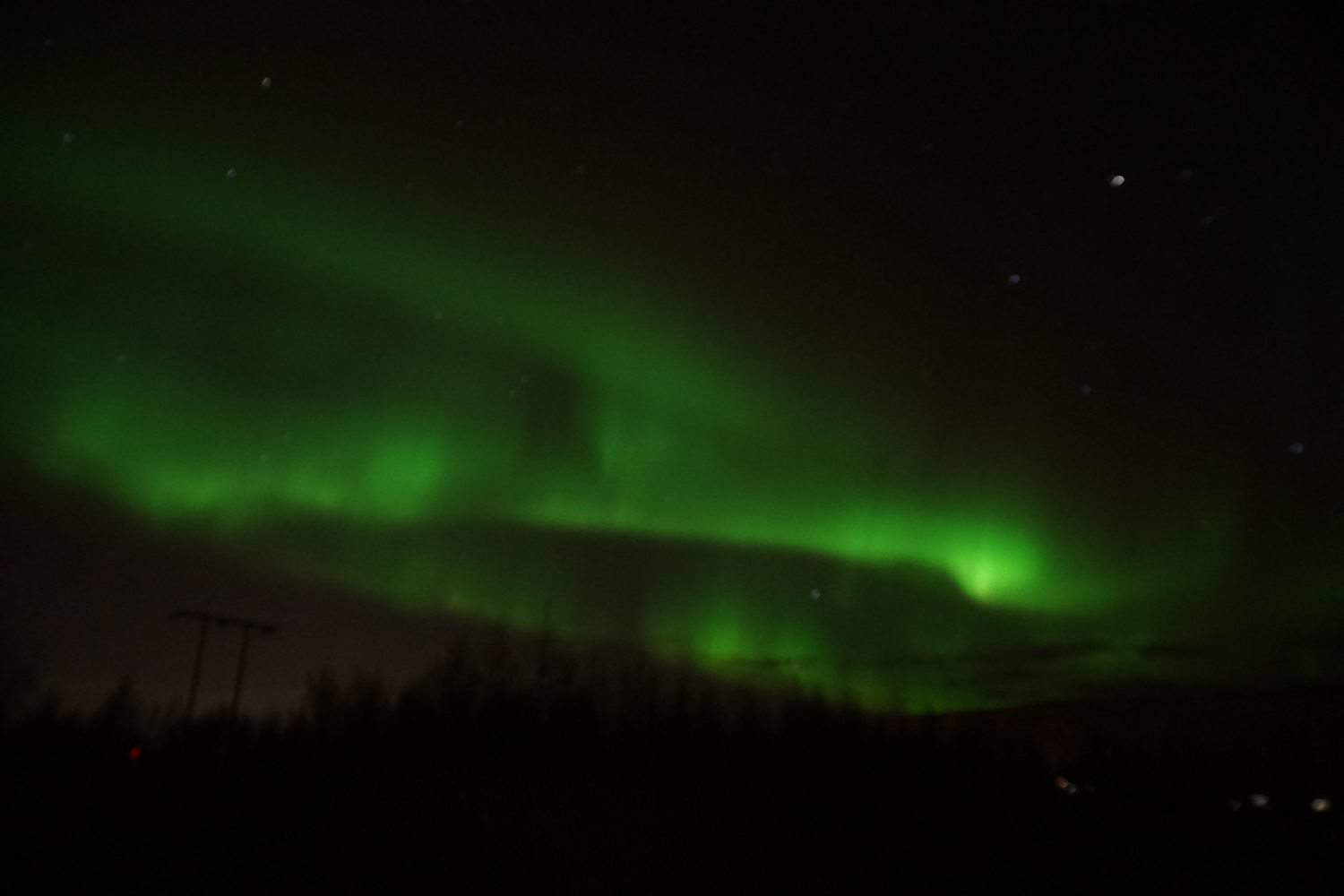 The sky was clear for the first night all week and we thought that we might be able to see some Northern Lights. We decided to camp outside the city at Hamrar. What an excellent choice! Lo and behold about 8:30 pm a green rainbow started to appear across the sky. Shortly thereafter, the lights really lit up and starting dancing magically across the sky. We got out our cameras to see what we could capture. It worked! We were ecstatic. Unbelievably incredible!