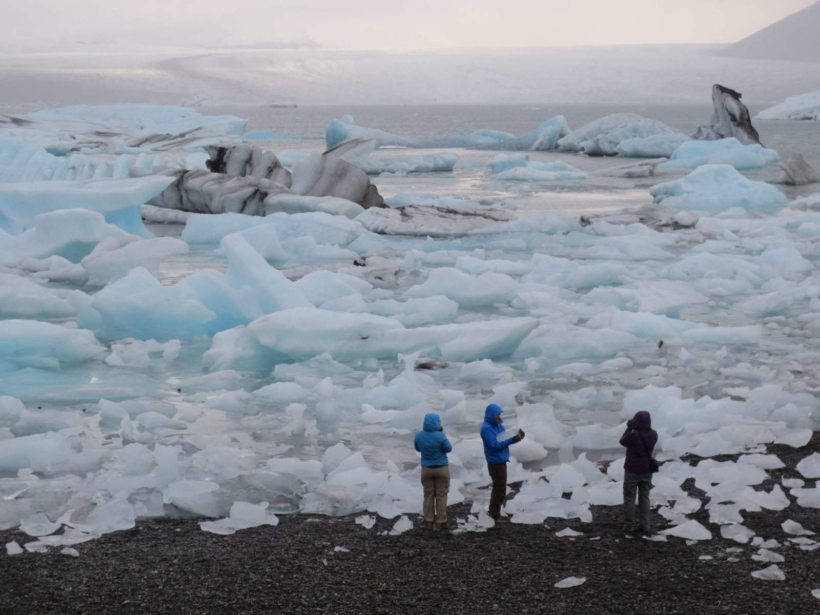 Our goal for the night was about 5.5 hours away so we needed to get driving. However, thirty five minutes away, hidden right off the road was the Jökulsárlón glacier lagoon. WOW! What a place! In the cold sleeting rain, we meandered over the hill to drop down to the other side and step into a whole other world. Words simply cannot describe the feeling of looking upon floating icebergs of all shapes, sizes and colors against a stormy sky and icy water along a rocky beach. Our hands froze as we tried to capture photos to show our friends and family back home.