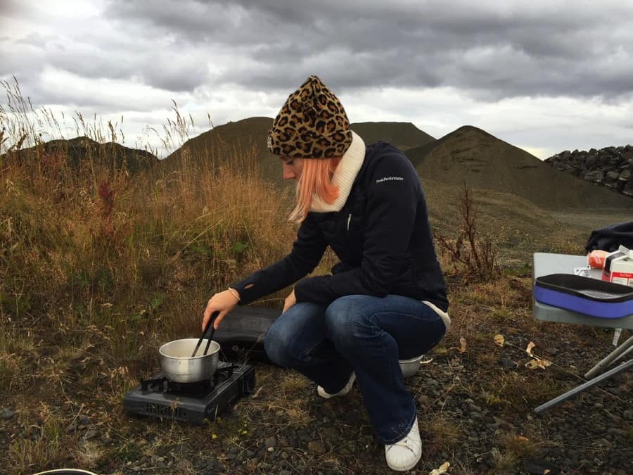 Camperstories Submission for October 2024. A couple traveling in Iceland in a VW Caddy, experiencing the ever-changing weather. Cooking in the rain and walking glaciers.