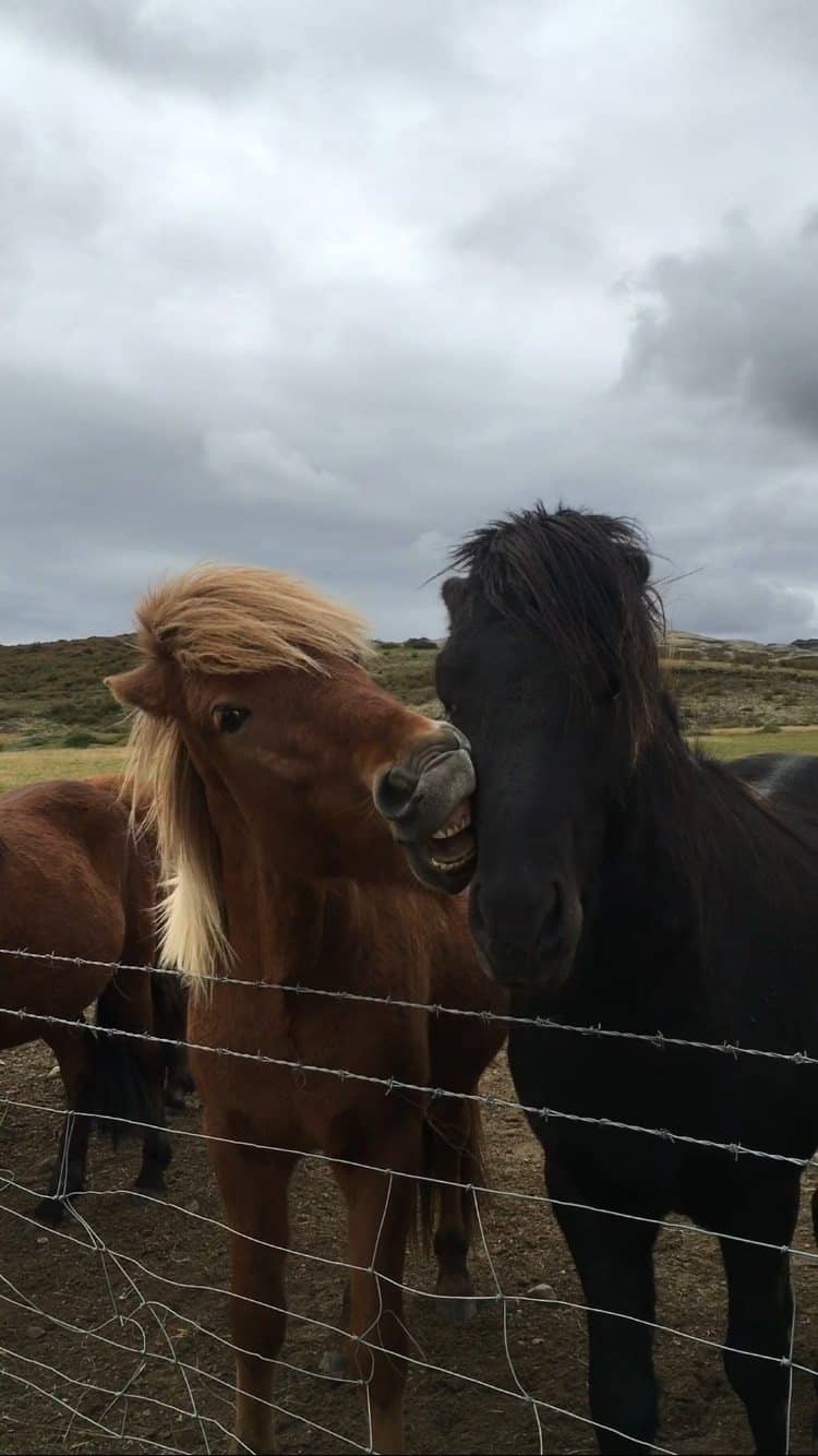 Driving from Keflavik we steered the camper van to the Golden Circle. Along the way we saw a group of tourists standing alongside a paddock with Icelandic horses. We parked the car and joined the group photographing and patting the horses. But eventually one of the horses must have mistaken one of Hanna’s fingers for a carrot and took a firm bite so Hanna’s finger was stuck between the horse front teeth. Luckily she was quick to pull it out and Simon and Hanna went on to Geysir. Hanna, with a pulsating quite red finger and Simon trying his best to hide his glee.
