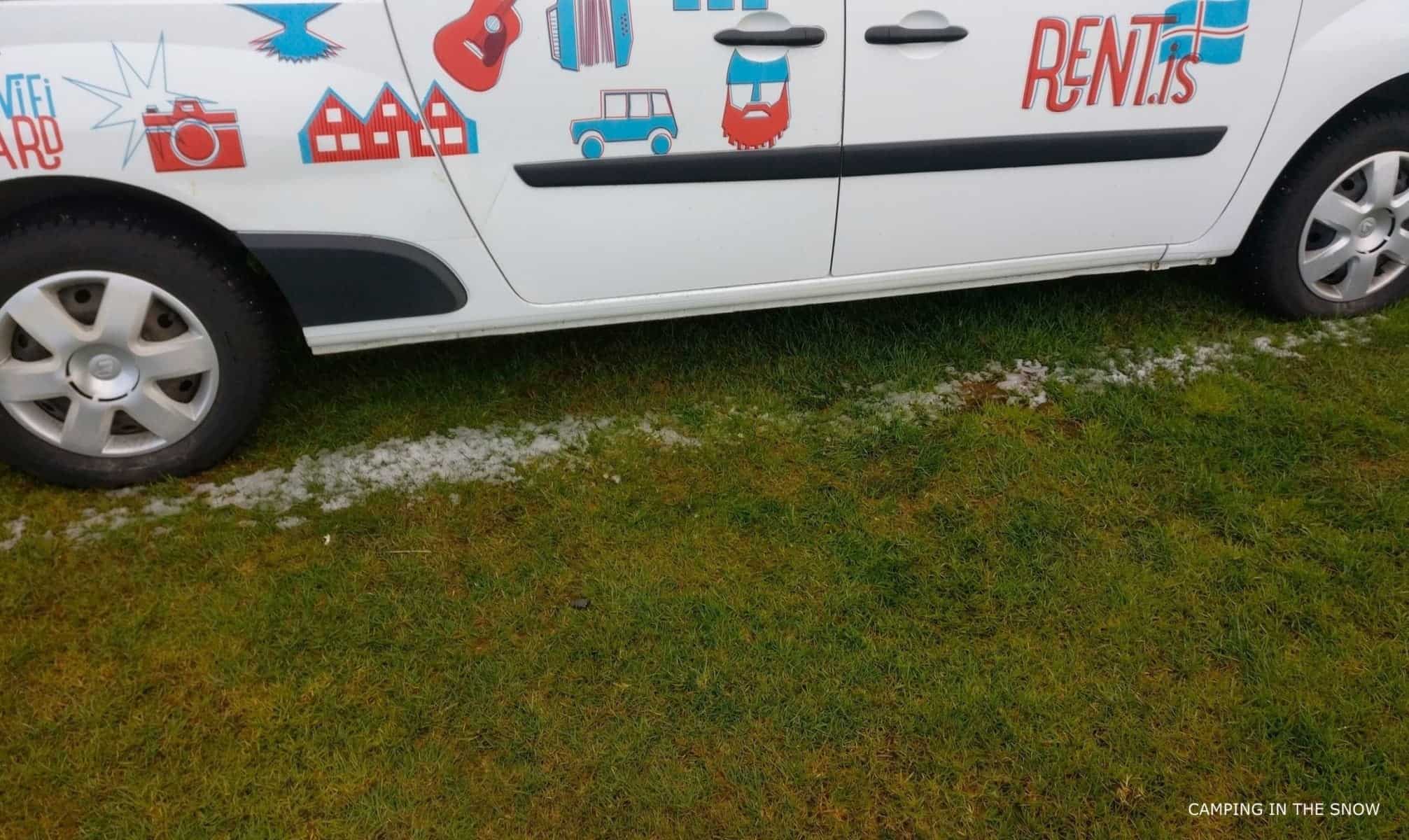Back to adventure time: after struggling for half an hour the snow turns back to pouring rain but finally they see the long awaited sign for the campsite… which is also closed. So they drove through a mountain storm for absolutely no reason. the next campsite is in Akranes and another half hour away, but it is right next to the ocean and you’ll be falling asleep listening to the waves crushing in. just to be awakened by hail smashing against the car the next morning and the wind making the car bounce. the wind, just the wind and nothing else.