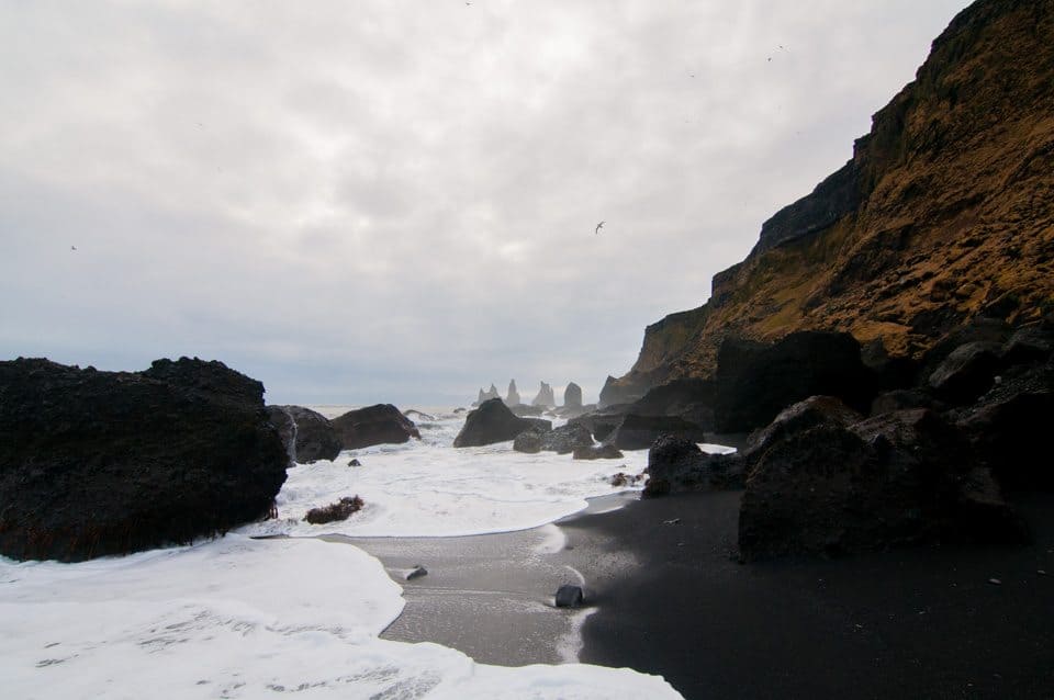 Shortly after a picnic lunch in our van, the rain conveniently eased off, so we ventured onto the black sand beach.