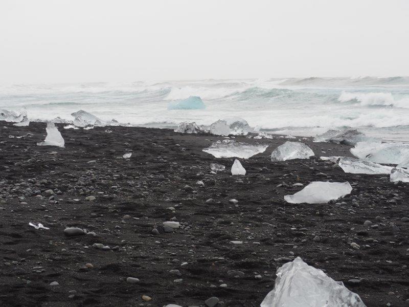 The more famous Glacier Lagoon and black sand beach where chunks of glacier roll up on the sand were equally amazing, although more crowded. We even saw seals in the lagoon. The chunks of glacier on the black sand also improved our mood after getting caught in a rain shower as we walked around the lagoon. Somehow ice and sand made us happy.