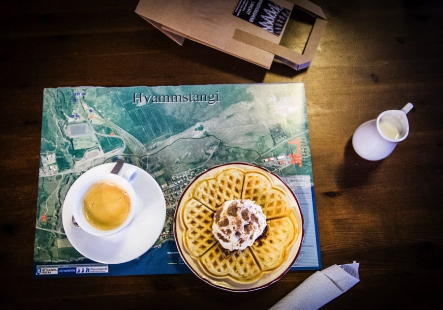 Our first pit stop was to Discount Grocery Store, as eating in restaurants etc. can be prohibitively expensive. It was just a few minutes away from the airport in the direction of Reykjavik. We gathered food for our week on the road. A fridge is provided in the camper van, so we stocked it with Skýr yogurt, milk, cheese, chocolate and other goodies for breakfast and lunch.