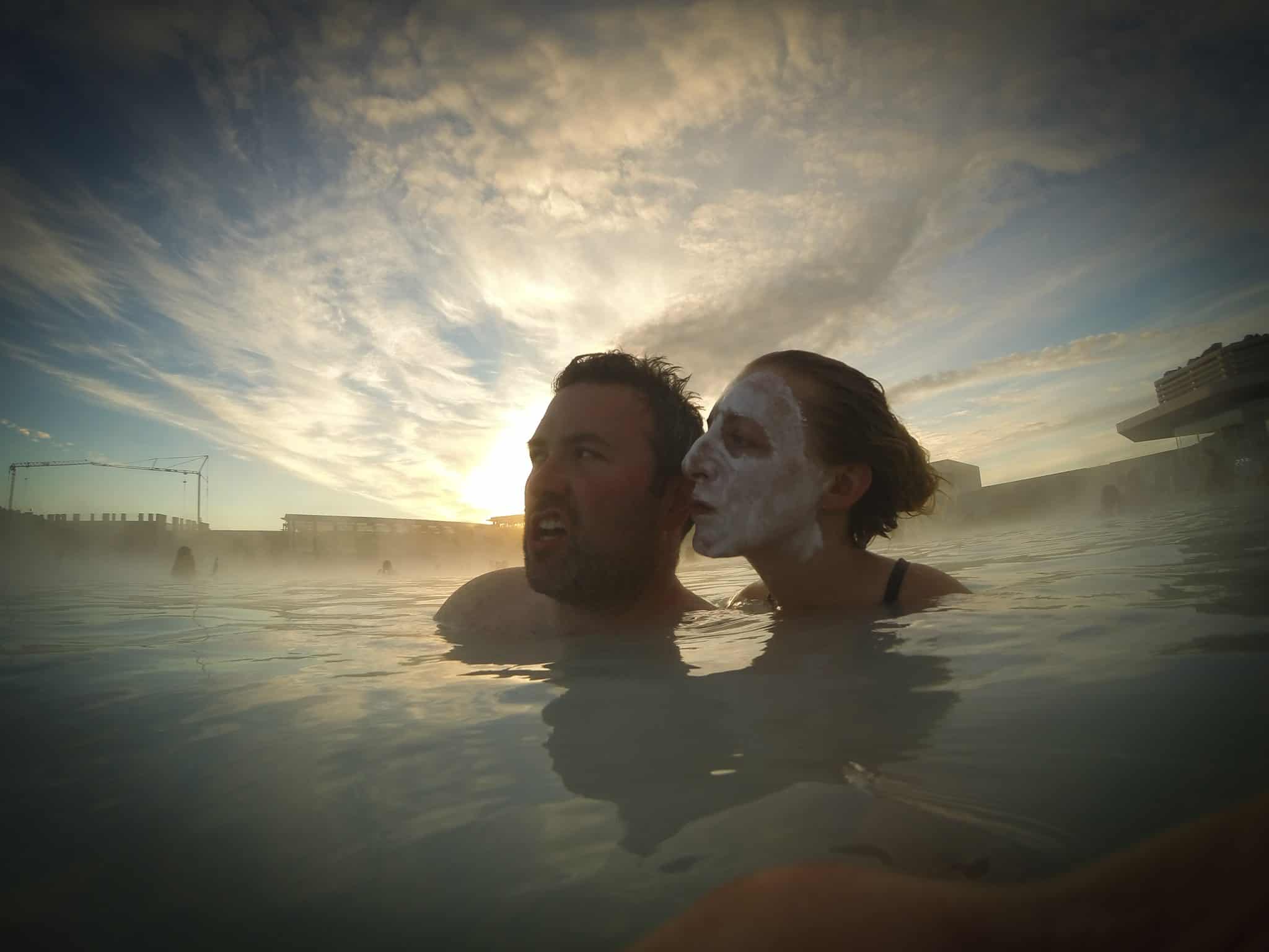 We chose this late time to avoid crowds and it was perfect. We watched the sun set as we relaxed in the natural hot spring. We took advantage of the sauna, steam room and had a smoothie and a glass of champagne without leaving the water at the outdoor bar. A great way to finish our stay!
