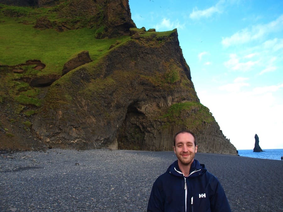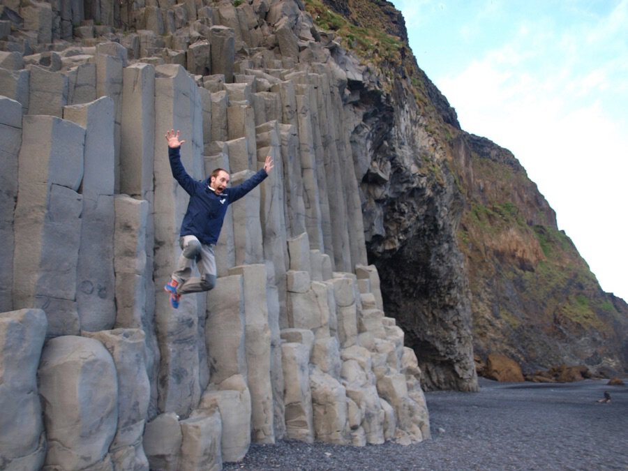 The sun is taking ages to set. We visit the black sand beach of Reynisfjara, where the cliff seems naturally pixelated and some creepy pointy rock pillars emerge from the sea, as if an ancient ocean god tried to grab the cliff with its gigantic claws right before getting petrified.