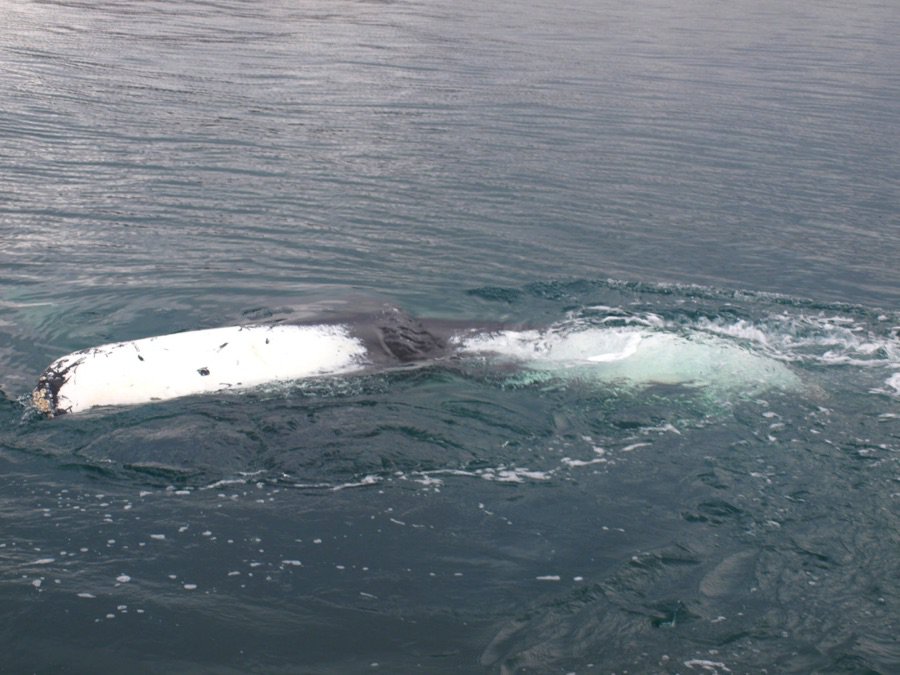 We’re all so focused on taking the perfect picture when it surfaces, that a second whale takes us by surprise. We watch them both passing under the ship, going from one side of it to the other, surfacing and turning around on their backs. One of them even waved at us with its 3 meters long fin!