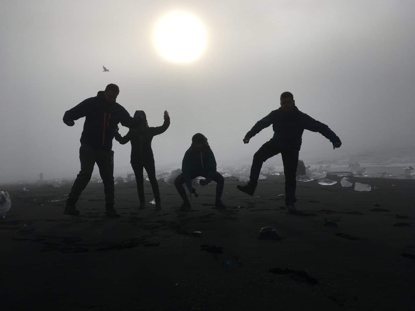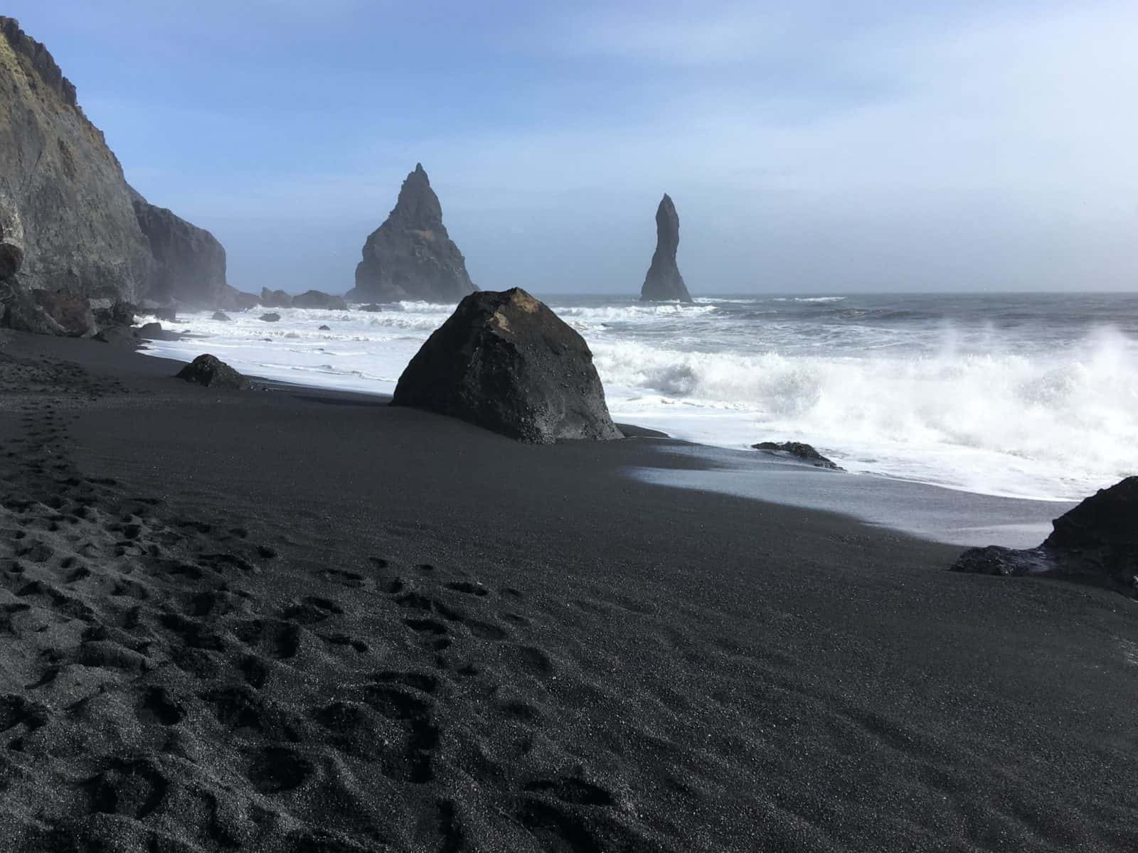 Enjoying the black sand beach Reynisfjara  The Ring Road Iceland