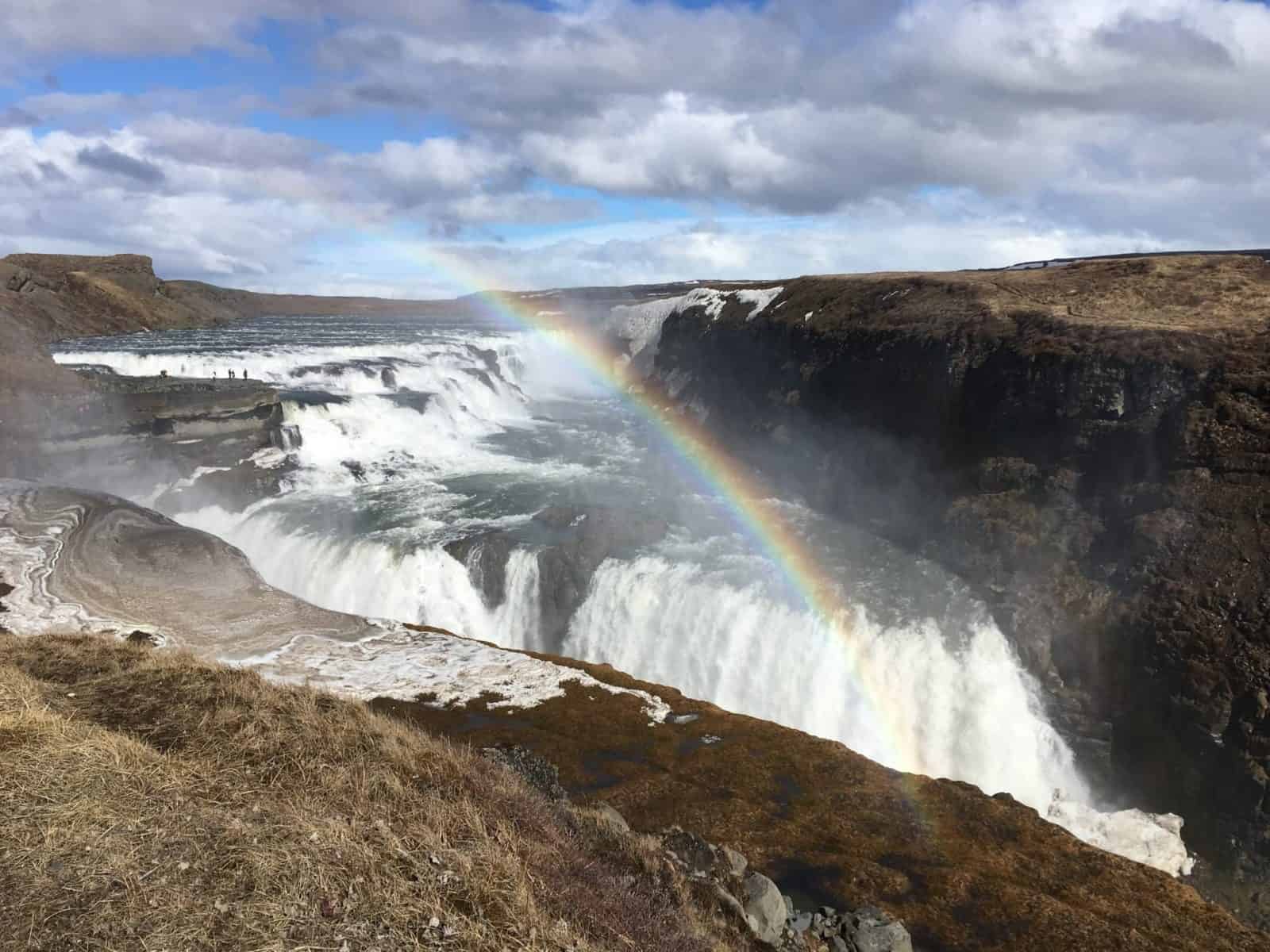 First stop was Geysir, it was fun but we had to wait around 10 minutes maybe more, for the big splash and then baaaaam.  I was surprised because the splash was so high.  Our second stop was Gullfoss, the biggest waterfall what we ever seen with a beautiful rainbow over it and the soft spray from the waterfall was so fresh, such a  damn good scenery at this place really! And at the end of the hard day we jumped into the water in Flúðir (The Secret lagoon – Gamla laugin) it was the best choice because we were really tired and we needed the shower.