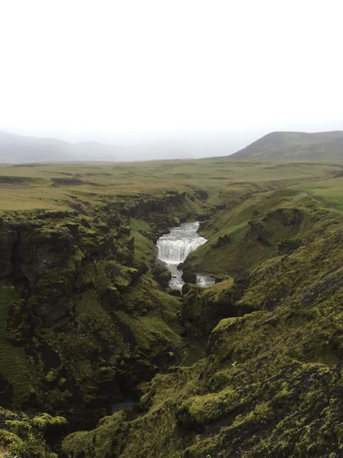 It had all seemed so easy that morning. We sauntered up the stairs at the magnificent Skógafoss, coffees in hand and a spring in our step. A storybook landscape greeted us, lush undulating hills salt and peppered with white and black sheep alongside a rushing glacial river. Around every bend was a “foss” more stunning than the last.