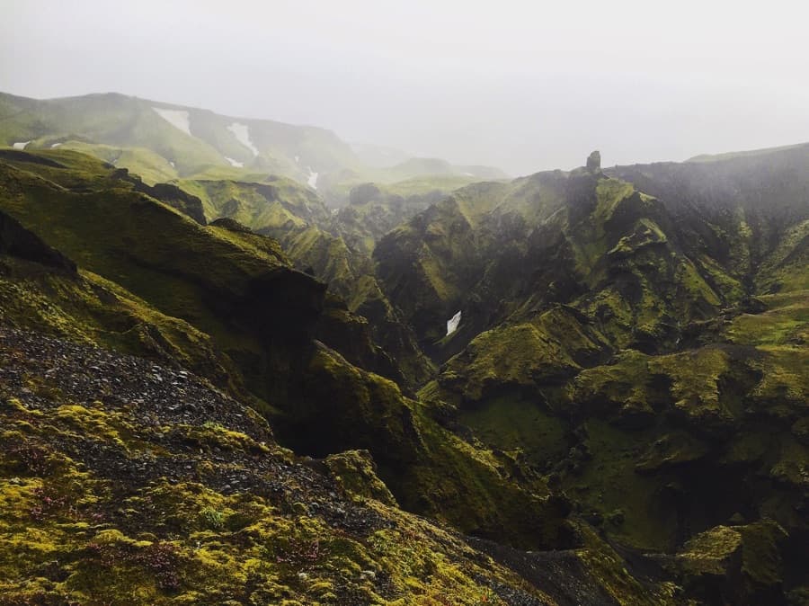 We started to regret our decision to extend our camper van rental six hours into our hike from Skógar to Þórsmörk. Soaking wet and freezing cold, we were poorly equipped for the relentless wind, rain, and hail. We could have spent our last day in Iceland relaxing at the Blue Lagoon and sleeping in a cushy Air BnB in Reykjavik. Instead, we were trekking over volcanic rock and glacial ice, unsure if we were even on the right trail.