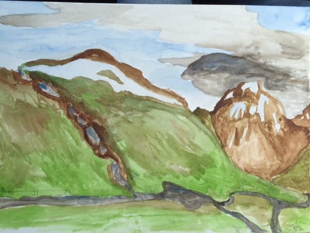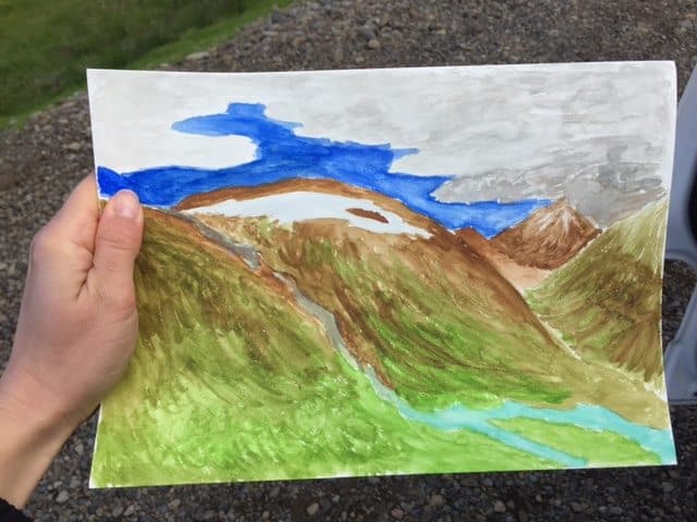 If you want a little creativeness during your road trip the Icelandic scenery is perfect for making a stop and paint some of the natural motives, and find your hidden artist. You do not have to be a good painter, just look at our paintings ?
