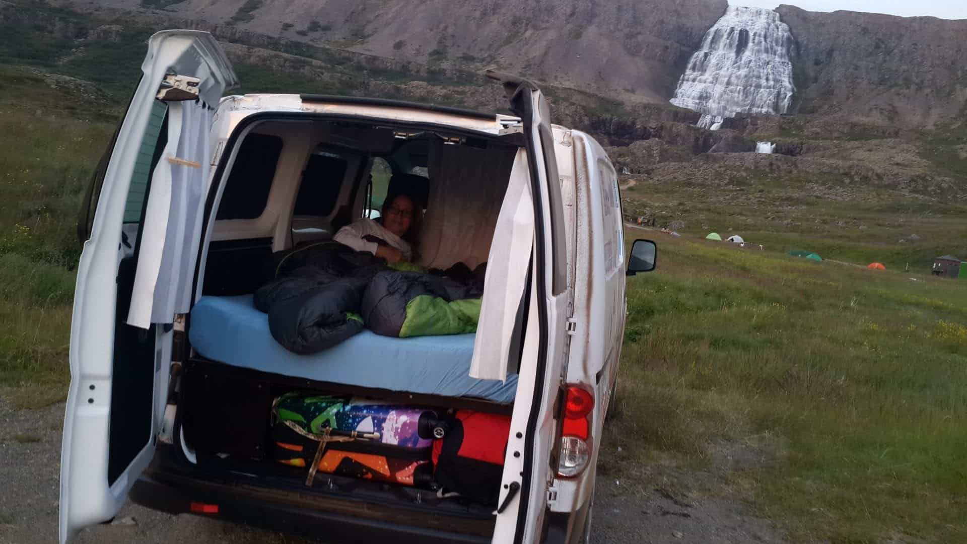 We forced ourselves each day to create a ”night” so we can rest and gain energy for the next day drive. Please rent.is, next time we come we want darker curtains installed in our NISSAN so we can have a proper colour of night ha ha ..