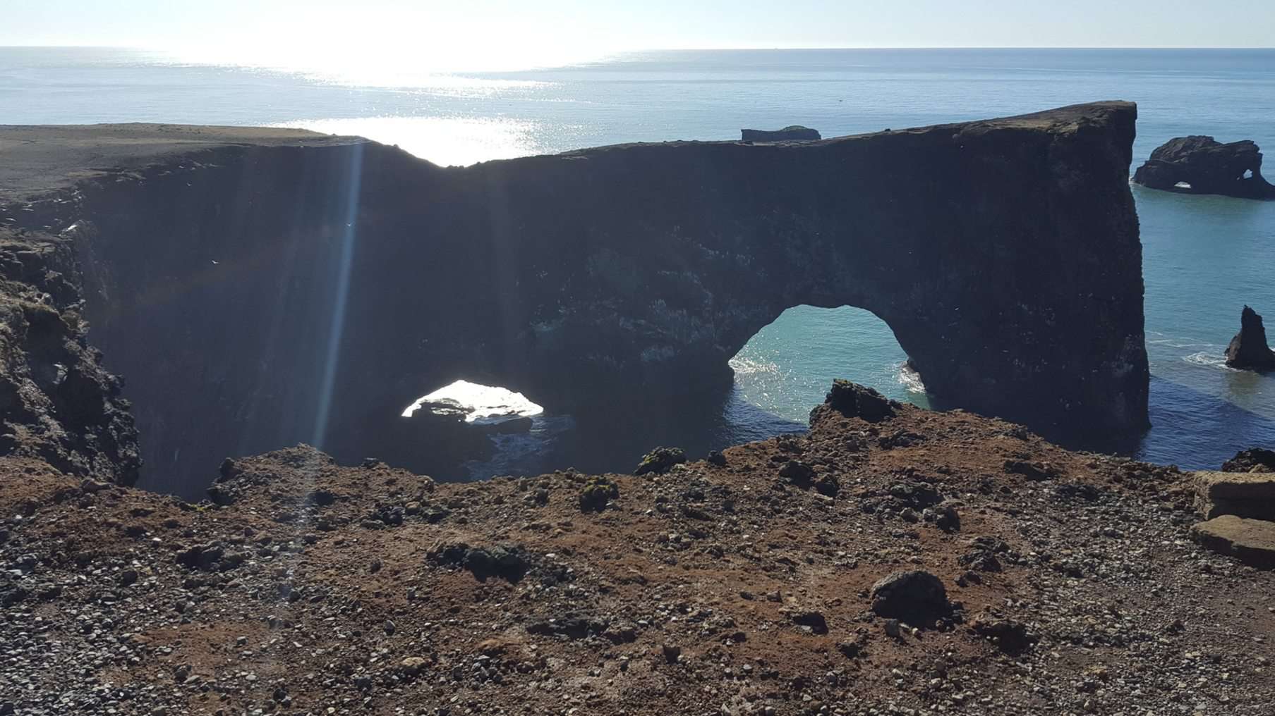 From Jökulsárlón we went on to Skaftafell National Park. This national park is basically one giant glacier, but on the south side there are 2 hiking paths. One leads to Svartifoss, a waterfall. To get to it you have to climb up the mountain, which can be a bit of a challenge. Once you get to it, it’s not the fall but the rocks that are most impressive. It’s almost as if someone cut them off to look like square columns, but it’s all natural. Since the sun had come out completely by now the rainbow was also clearly visible. Because of the sun, it was getting pretty warm as well, we were walking around in a t-shirt!