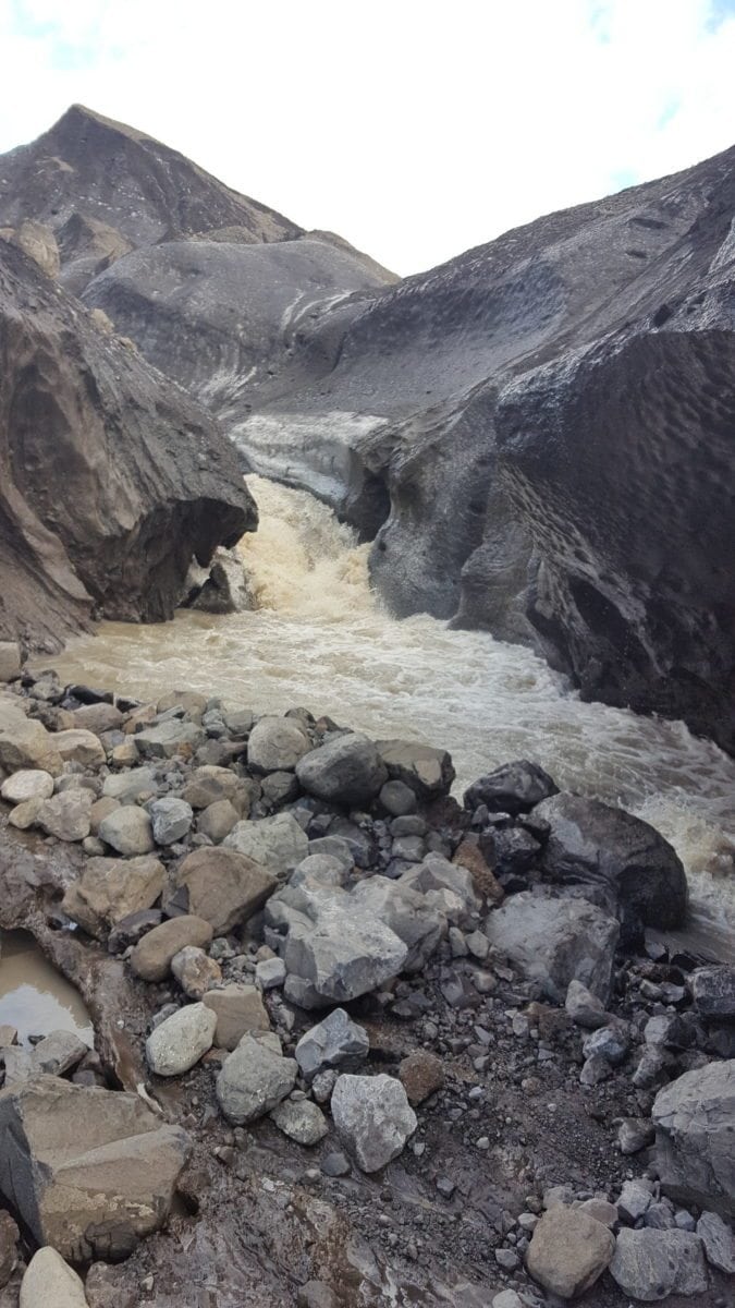 Time to cool off a little, the other hiking path led to the glacier Hvannadalshnúkur. You can walk up to the edge of an actual glacier. We even walked alongside for a bit, coming up to a small stream and being able to touch the ice. On the side the ice was completely black, making it hard to believe it is actually ice. Touching it and seeing rocks locked in it made it believable though.