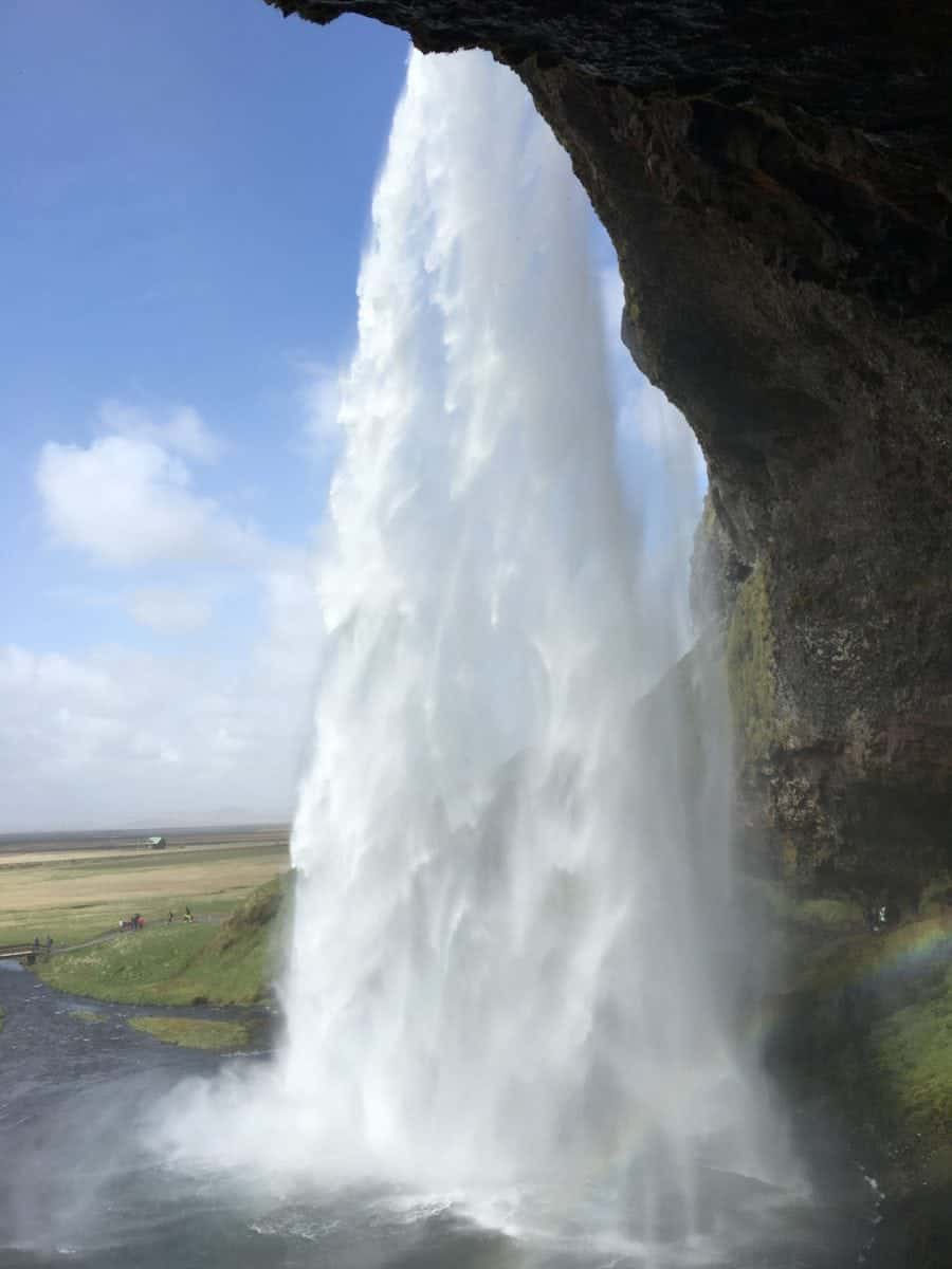 Then we visited two waterfalls. At Skógafoss we climbed 500 steps for a view from the top, and at Seljalandsfoss, we got to walk behind the waterfall, which was one of the most amazing and beautiful things we had done! We got absolutely soaking wet from the spray, but it was more than worth it!! And the sunshine dried us off pretty quickly!