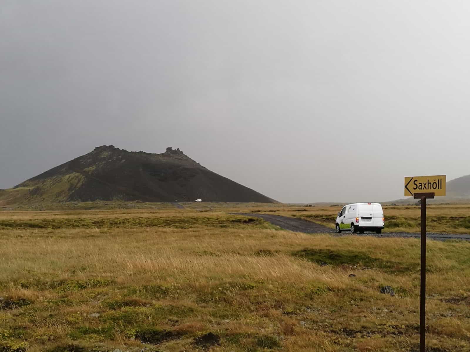 We spent the first three days of the journey through the West. The volcanic landscape became evident as soon as we entered the peninsula of Snæfellsnes. Snaefellsnes welcomed us with intermittent rain. During the raining moments, we visited the Vatnshellir cave composed of 200 meters of lava flow and with a dip of 35 meters below the surface. We called it our particular “Journey to the Centre of the earth”. But not only that, spectacular craters awaited our arrival. For instance, the famous Saxhóll crater, easily accessible, or charming cities such as Arnarstapi and Hellnar with a wonderful path surrounding the coast that unites them. Also Hellissandur, where we spent the night.