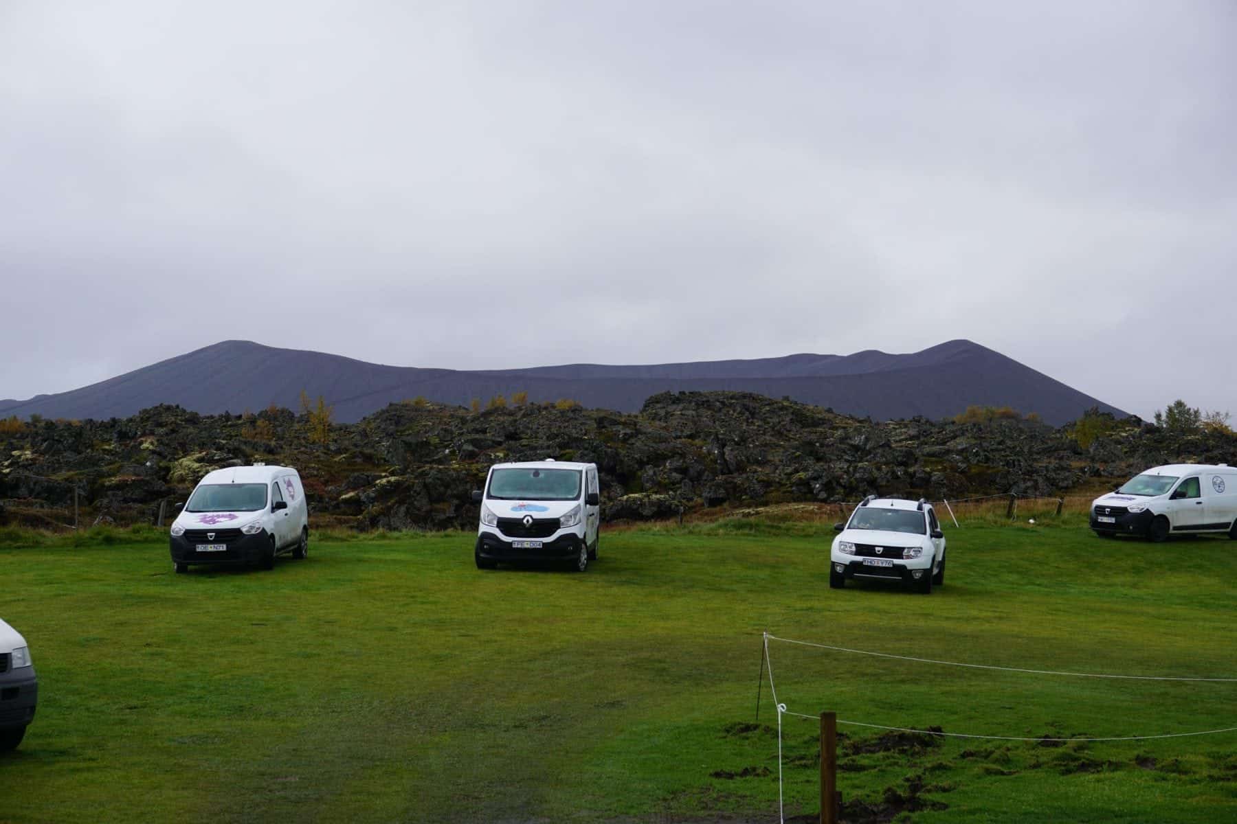 Day 5 – Fire – Lake Mývatn. We camped a couple of meters from the terminus of a lava field with a large volcanic structure (cinder cone) in the background at Vogar Campground. The Lake Mývatn area is geothermally powerful. Many of our family and friends thought we were off our rockers at this point as nothing like this exist in the North American Great Lakes Area that we are from. We were absolutely loving it.