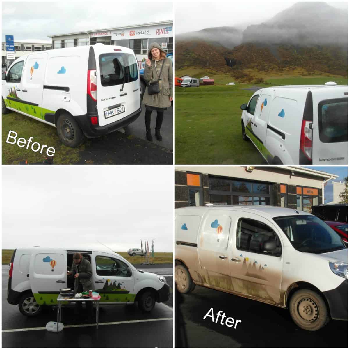 It was an early morning, we had a lot ahead of us. We had chosen a camper as our means of transportation – a small car with a bed in the trunk, which seemed like a good, cheap and relatively comfy way to travel. The camper we had seen on the internet and were hoping to get had a great drawing on it – a beautiful landscape with an air-balloon, but the camper we got only had some writings on it. 🙂 We were already packed and started the car, when we noticed a warning indicator on the dashboard, so we decided to ask what’s wrong. As it turns out, the car needed maintenance, and since we didn’t have time to wait, we were given a different car and as luck would have it – the one with the beautiful drawing, yay! 🙂