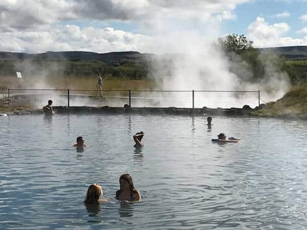 As we were already in Flúðir, we started the next day with a soak in the “Secret Lagoon,” formally known as Gamla Laugin and the country’s oldest thermal pool. Calm, peaceful and replenishing, this was another recommendation, from a friend’s son whose advice to me a couple months ago was this: “Skip the Blue Lagoon, go to the Secret Lagoon.” At the time, I had no idea what that meant, but in my research for the trip I concluded it was perhaps right for us, as the latter sounded like less of a circus than the more touristy and more expensive larger cousin near Reykjavik. We were happy with our choice, and perhaps on a future visit we will visit the Blue Lagoon.