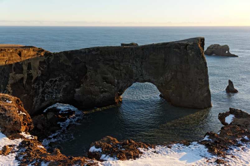 Our next stop: Dýrhólaey cliff and black lava sand beach.