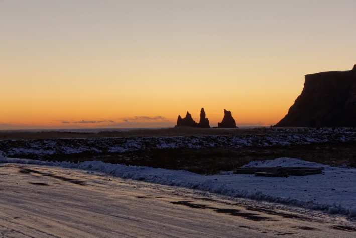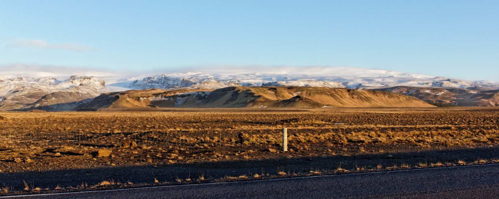 To reach this place, we took the ring road around Mýrdalsjökull glacier along the south coast. This dry and blasted geography is crippled with next to no vegetation and scarred by giant black volcanic rocks from previous eruptions. Driving through this shadowy silent world makes the experience unforgettable and bestows a feeling of freedom. On sunny days, the warm flickering light of the sun reveals the rocky mountains with their white cap of snow, contrasting with a bright blue sky. The view is simply astonishing.