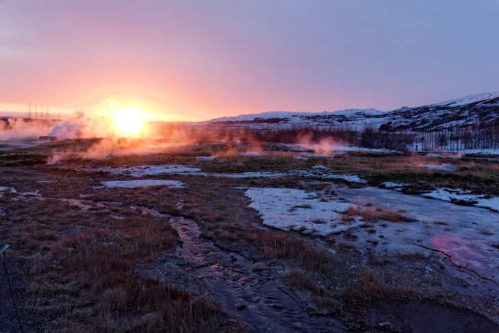 After lunch we drove back to Geysir to watch the sunset steal the giant ejection of hot steam made every 7-9 minutes by “Strokkur”. Geysir is no longer active at the moment, but Strokkur is very