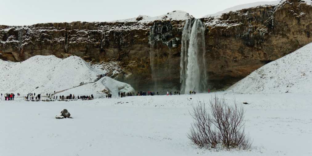 stands among the highest of waterfalls in Iceland. But what makes it particular is the possibility to walk behind it. Unfortunately during winter, the icy and narrow path to access the rear is impossible to cross. Nonetheless the site offers a great view of Helka volcano and the archipelago of volcanic Islands Heimaey and Surtsey among many smaller ones. The 1973 eruption from Mont Eldfell that destroyed half of Heimaey is explained in the Lava Center.