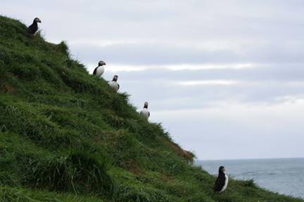 Although we had been over to see the puffins the previous evening, we decided to quickly run back this morning. It had been a bit rainy the day before, and it was worth the trip back as more of the little birds were out around the cliffs, ducking in and out of their nesting burrows.