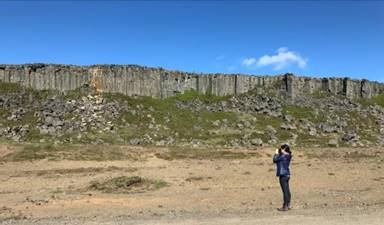 The next natural wonder on our list was the Gerðuberg basalt columns. And from here you could also see the Eldborg volcanic caldera in the distance. We did not hike into the crater but had a good view from the side road near it.