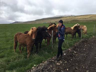 Just past here is the parking area for the Hvítserkur rock formation. As an added highlight, we noticed a number of horses running in the field next to the parking, and when we walked over to take some photos they all ran over and lined the fence to say hello. Similar to the sheep, we were surprised with how many horses were spotting the landscape over the country. They seem to be a bit stockier than the horses we are used to, but really handsome and with the most dramatic sweepy ‘hair’ in their manes.