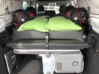 We were checked in and shown the VW Caddy Camper that would be our home for the week. The individual working took us through all of the features of the camper and explained how to operate the cooler and heater. He took his time to explain the curtains we would put up at night, and how the bed folded down. Everything was brand new on our camper, with only 74 kms! There were really warm sleeping bags, pillows, and a sheet as well as a tote with dishes and pots. We were pleasantly surprised to see all the little storage areas in the camper; great to tuck away our things for the week!