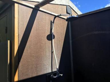 Maybe it was because it was such a beautiful day, but the setting for this campsite was lovely. The mountains and surrounding fields were lush and green and the sun was very welcome. The kitchen was clean and new, as well as the washroom facilities.