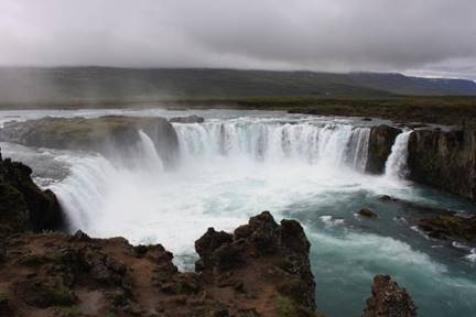 Goðafoss is right on the main road and really worth the stop. For these two Canadians, it was like a mini Niagara Falls spot, with a nice set up / viewing platform.