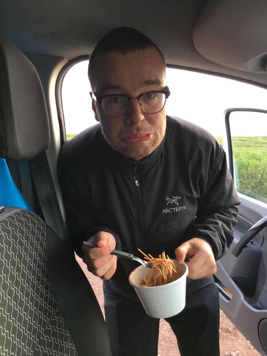 After a long 7 hour plane ride with little sleep we arrived in Iceland at 06:00 AM! We grabbed our Camper van and headed out to get groceries in Reykjavík. We then had a nap in a parking lot while waiting for Bónus, the grocery store, to open. None of the labels were in English! Murray bought yellow mustard for his sandwich, which turned out to be much different than Canadian mustard! Finally, after a few more setbacks (like having to call the rental company to explain how to close the side van doors because we were too tired to figure it out) we set off on the Ring road!