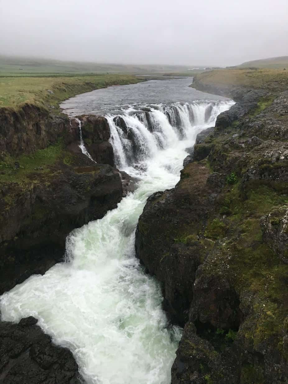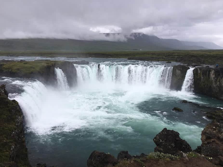 Today we had another long day of driving! We had a slow start because it was still cold, windy, and raining and we were unmotivated to stand outside and boil water for our oatmeal. We decided to head straight to Goðafoss waterfall, which was right beside where we parked the van for the night. The waterfall was another amazing one, there have been so many on this trip! The cafe at the falls was nice enough to give us hot water for our 02:00 PM oatmeal breakfast.