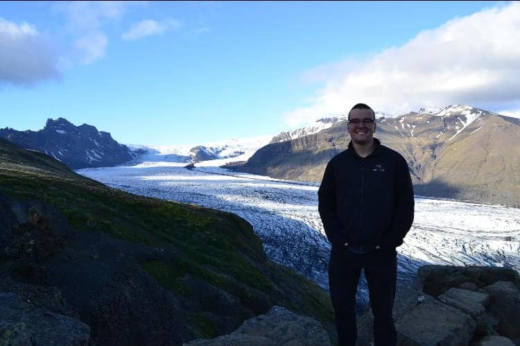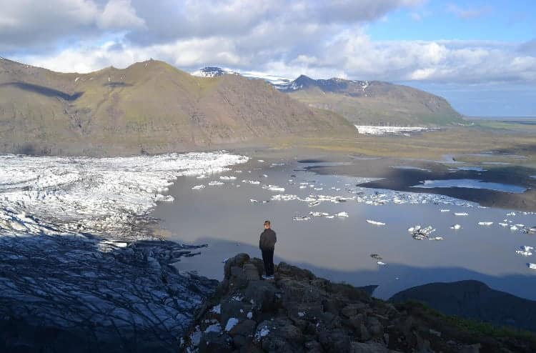 We parked our camper van at the visitors center of the national park and set off on our first hike of the trip, up to the Sjónarnípa viewpoint, which was a 3 hour hike that overlooked the Skaftafell glacier. On the way up to the viewpoint we stopped at Svartifoss waterfall, which displayed cool basalt volcanic columns all around it.