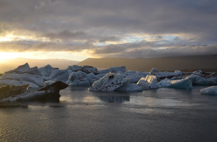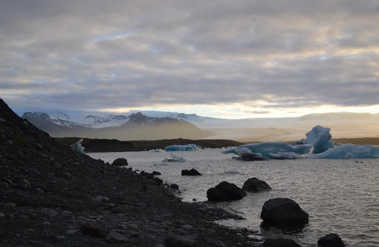 After Murray finished his peanut butter and jam sandwich number 3, we drove to Jökulsárlón Glacier Lagoon, which is a body of water ~248 m deep that holds all of the glacier chunks that have detached from the Vatnajökull glacier. We made it just in time for sunset and I can honestly say it’s the coolest sight I have ever seen. We saw seals weaving between the icebergs and even a large chunk of ice break off and fall into the water! The ice chunks eventually leave the lagoon and float down a channel, under a bridge, and then into the ocean where they wash up onto a black sand beach called Diamond Beach!