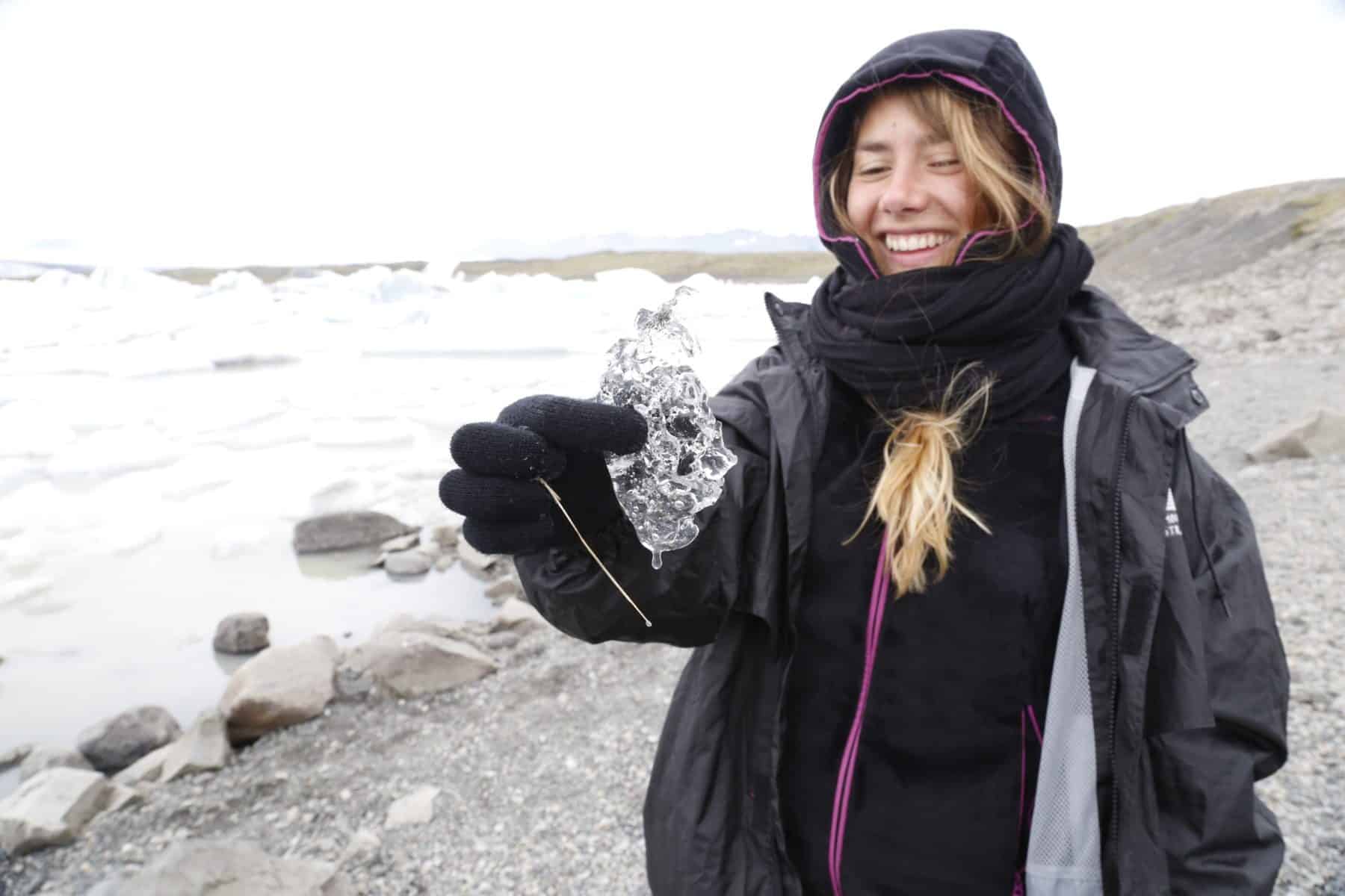 We had an appointment at 1pm at the lagoon of Jökulsárlón and visited it. When we arrived in front of Jökulsárlón there were way more tourists and many nationalities combined. The cold caressed our faces while the sun was heating us up. An icy sweetness, a frozen paradise.
