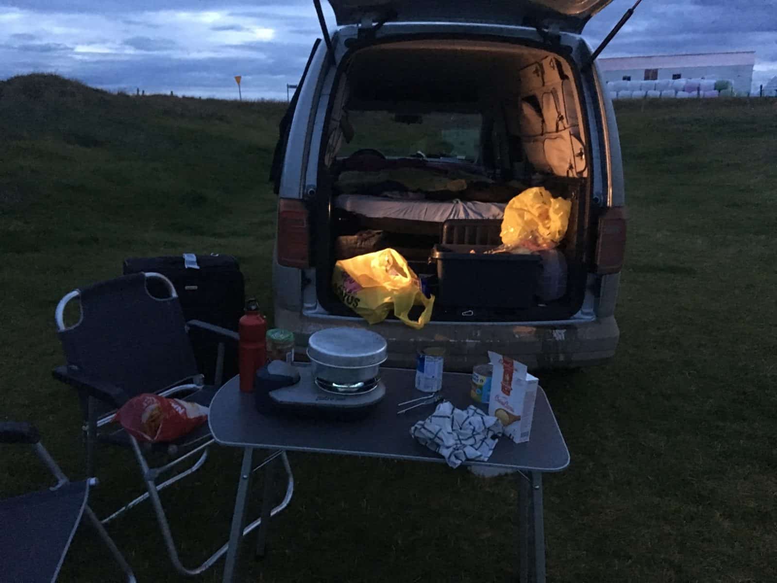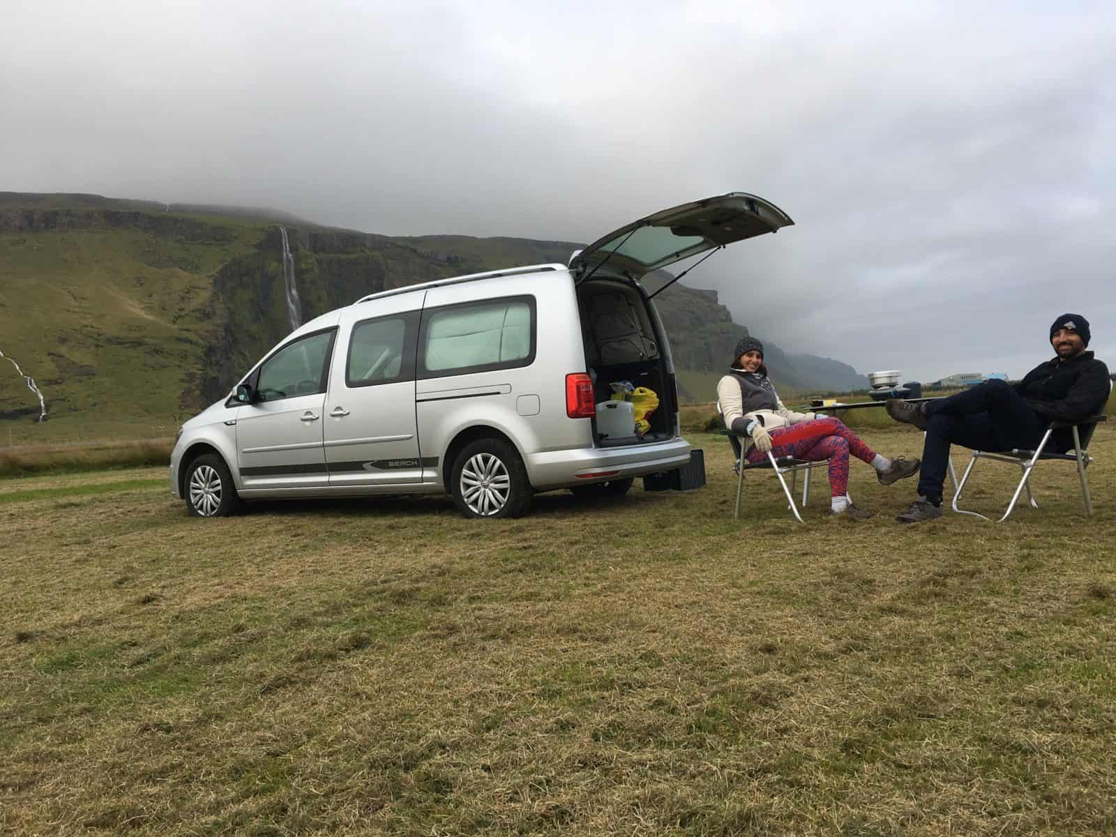 Below Gullfoss waterfall Our VW Caddy Camper in Iceland