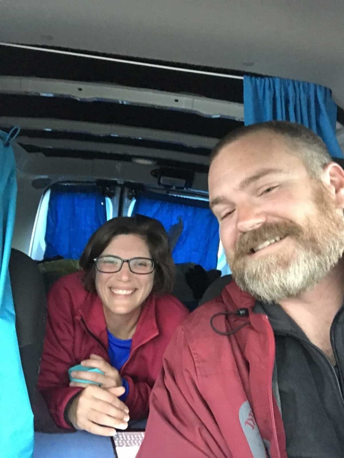 We rented our camper van from the airport location. The company picked us up at arrivals and shuttled us to the rental agency, so that made it super easy. After signing some papers, we were off to see as much as we possibly could. We were greeted by 60 mph wind gusts and a nasty sleet and snow mix. That wasn’t going to stop us though. We were originally going to start right into driving the Ring Road, but my husbands white knuckles indicated we might need to reassess that plan. That’s the ease of travelling in your bed! We decided to spend the first day discovering the Golden Circle instead. We had no problem finding campsites each night and with our free WiFi in the van we were able to find places to park as we drove along the way.