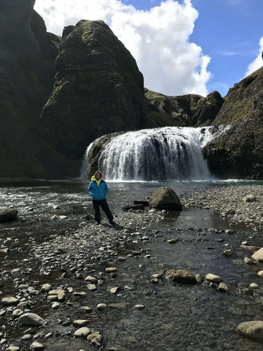 As you drive east along the Ring Road you will pass countless waterfalls. The larger falls will have parking areas (some you have to pay to park) and maybe a gift shop or food trolley. Bring some waterproof gear and you’ll have more fun! My waterproof boots made it easy to walk in super close without having to dry out socks and layers every night. Bring some rain pants and a Goretex jacket too, you’ll need it! My favorite waterfall was in Kirkjubæjarklaustur. The sun was out and it’s not a major attraction, so there were only 4 other people there. That’s part of the beauty of Iceland, it’s not hard to get away from the crowds and find some solitude and soak up the nature surrounding you.