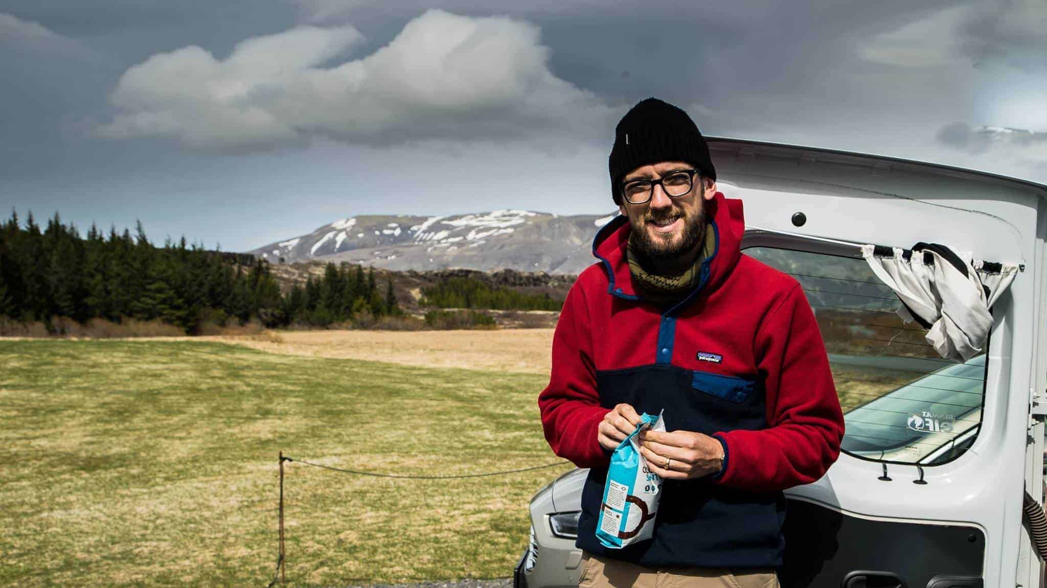 Camperstories Submission for October 2024. A couple traveling in Iceland in a VW Caddy, experiencing the ever-changing weather. Cooking in the rain and walking glaciers.