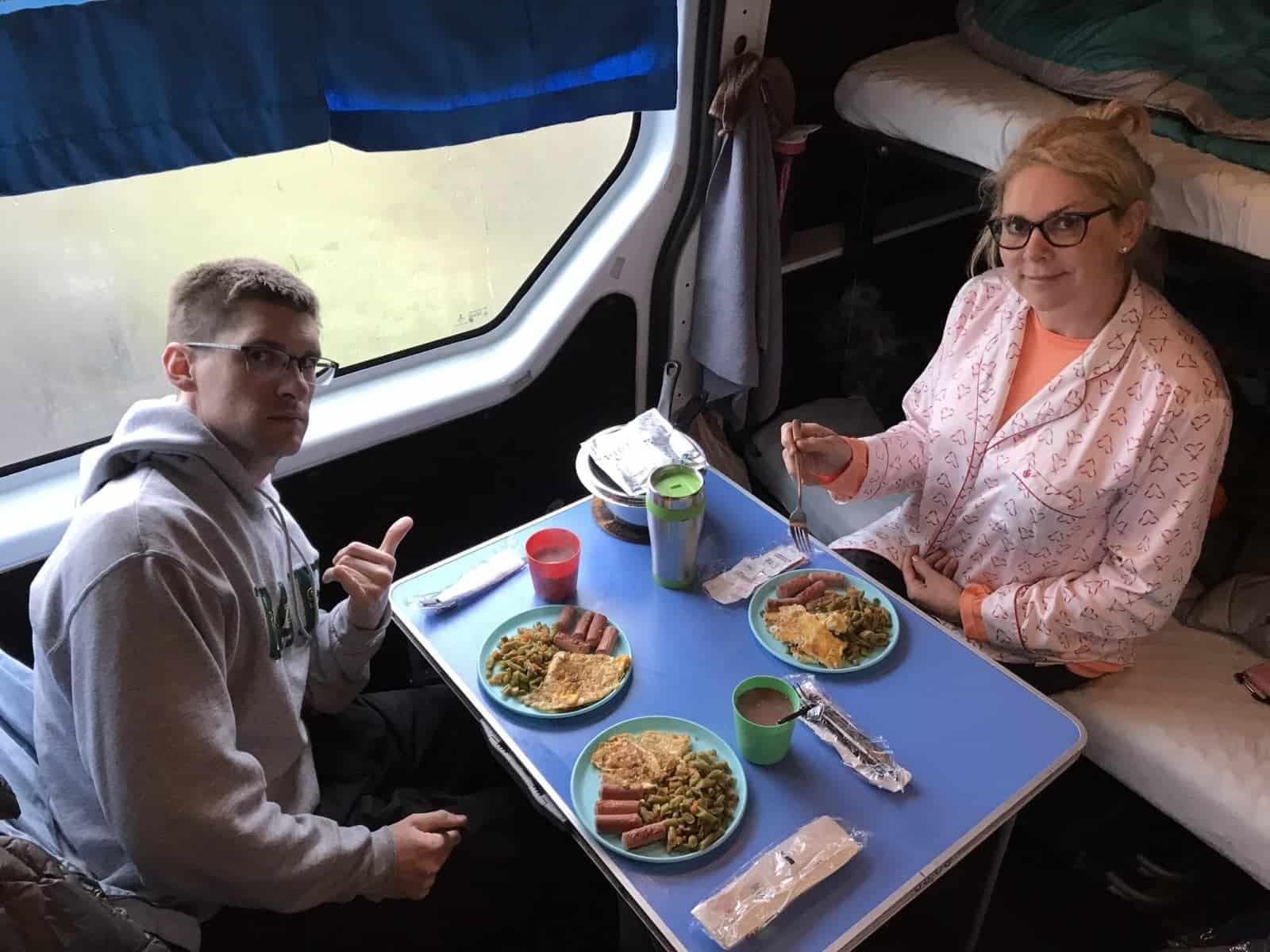 After a surprisingly good sleep in our cozy camper (thanks to the cold weather and warm sleeping bags), we had breakfast in the camper before starting another night of sightseeing. P.S. Mom is nailing the camping game making herself at home in the camper.