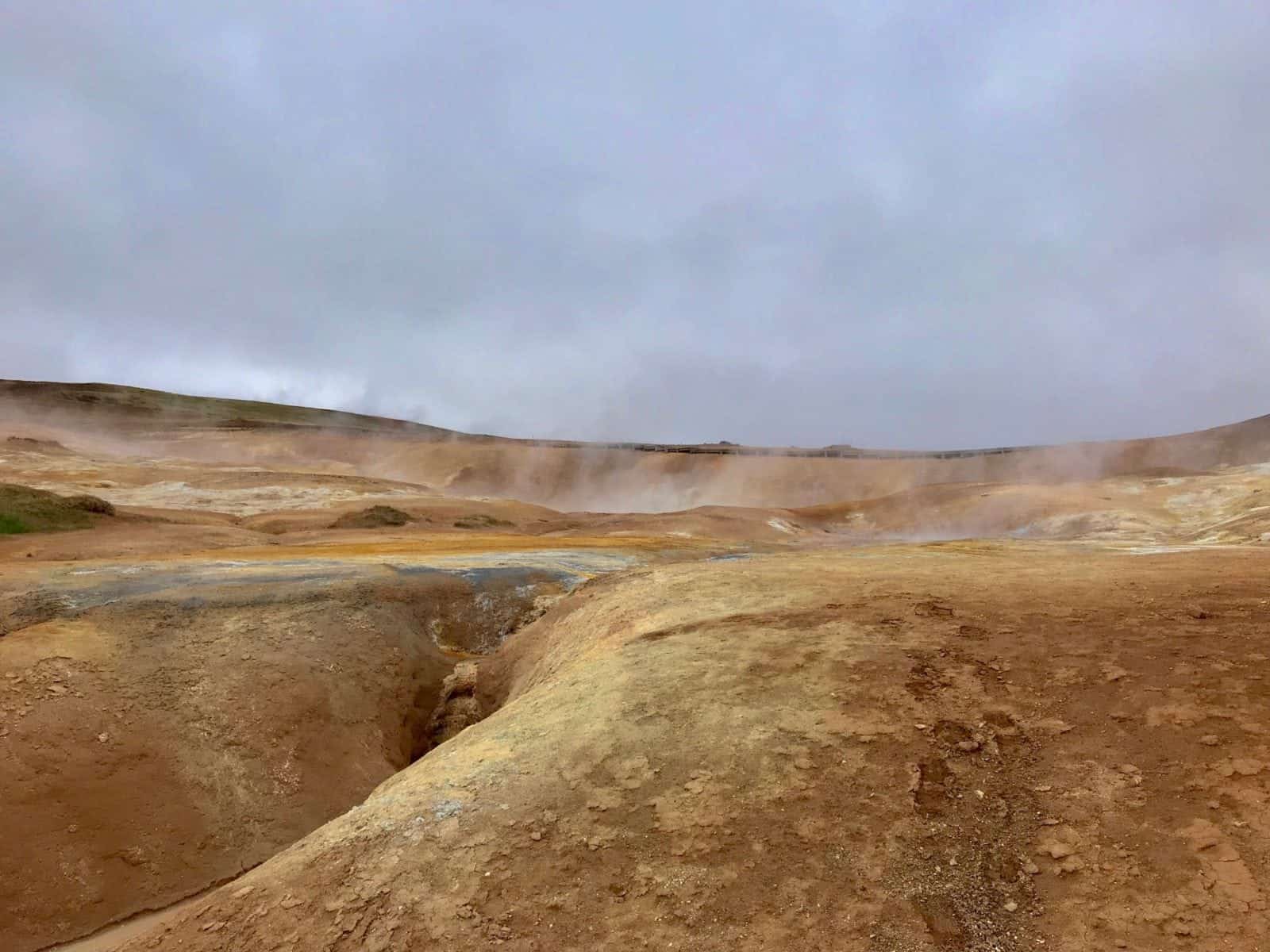 Our last stop of the day took us to what we would imagine Mars to be like, the Krafla geothermal area, where we were surrounded by earthy-colored landscapes with steam fuming from the ground as if the whole area is on fire with an overpowering smell of sulphur. This unique landscape was formed by the volcanic activity during the Krafla Fires.