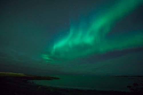 After Kirkjufell we headed to our last campground for our trip in the beautiful country of Iceland. We planned on staying at a campground in Akranes. We got to the camp and cooked up our last freeze dried meal using the camp stove. We almost ran out of propane (the van came with two canisters) so it worked out perfect for us. The best way to end our camping portion of the trip would be a Northern lights show over the water, which is exactly what happened! We had seen the northern lights our second night but this time around was mind blowing. We watched the northern lights light up the sky for nearly two hours as we laid on the beach filling up our camera’s memory just in time for bed.